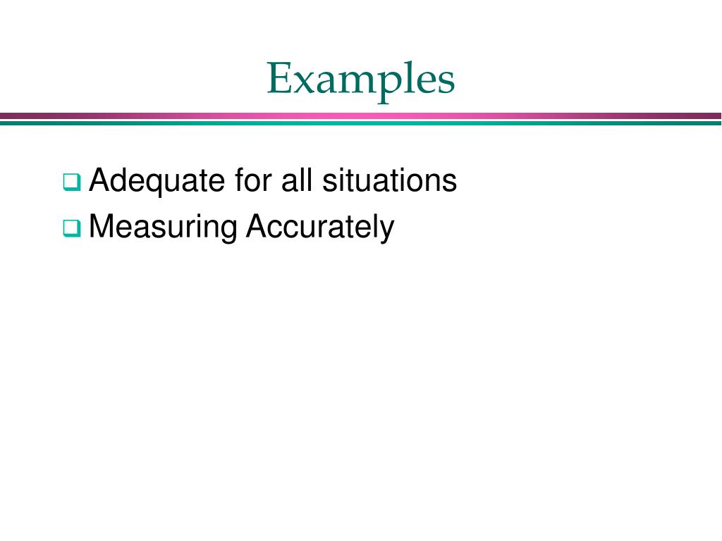Examples • Adequate for all situations • Measuring Accurately