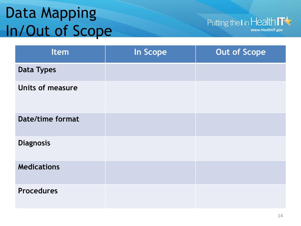 Scoping • Review comments received on wikipage • Address specific areas of scoping: • Data mapping • Language translation • Textual data • Geographic • Additional items