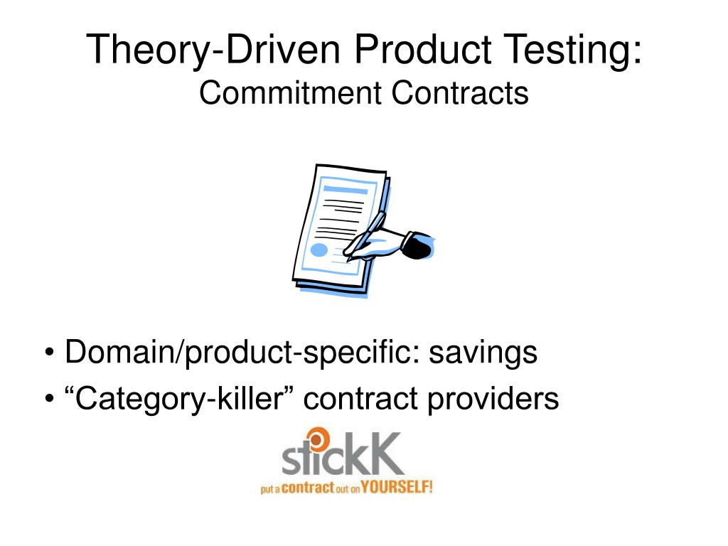 Theory-Driven Product Testing:Commitment Contracts Domain/product-specific: savings “Category-killer” contract providers