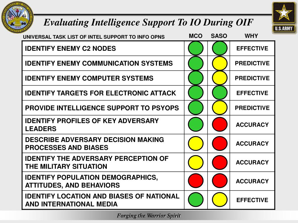 Evaluating Intelligence Support To IO During OIF MCO SASO WHY UNIVERSAL TASK LIST OF INTEL SUPPORT TO INFO OPNS