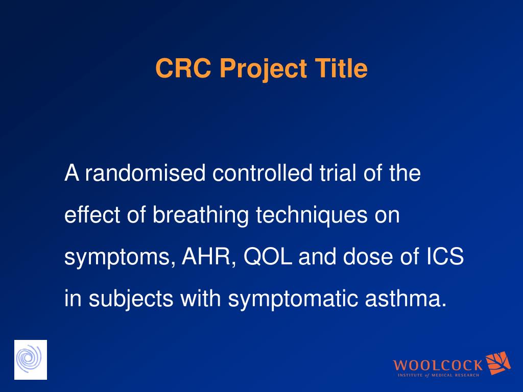 CRC Project Title A randomised controlled trial of the effect of breathing techniques on symptoms, AHR, QOL and dose of ICS in subjects with symptomatic asthma.