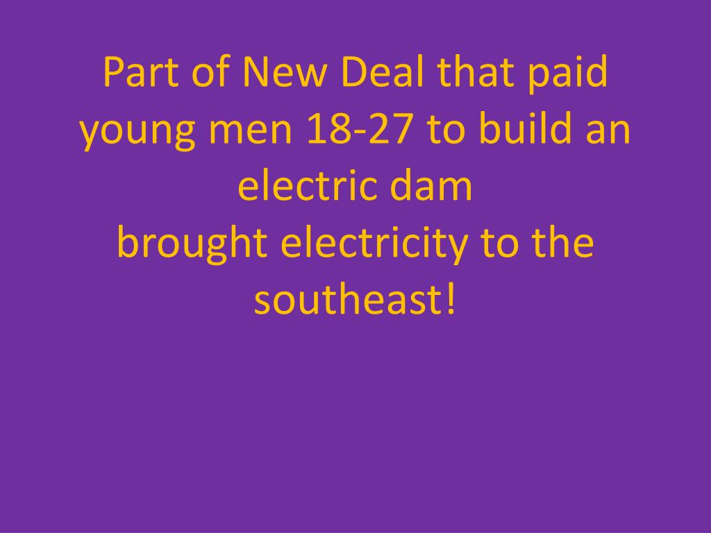 Part of New Deal that paid young men 18-27 to build an electric dambrought electricity to the southeast!
