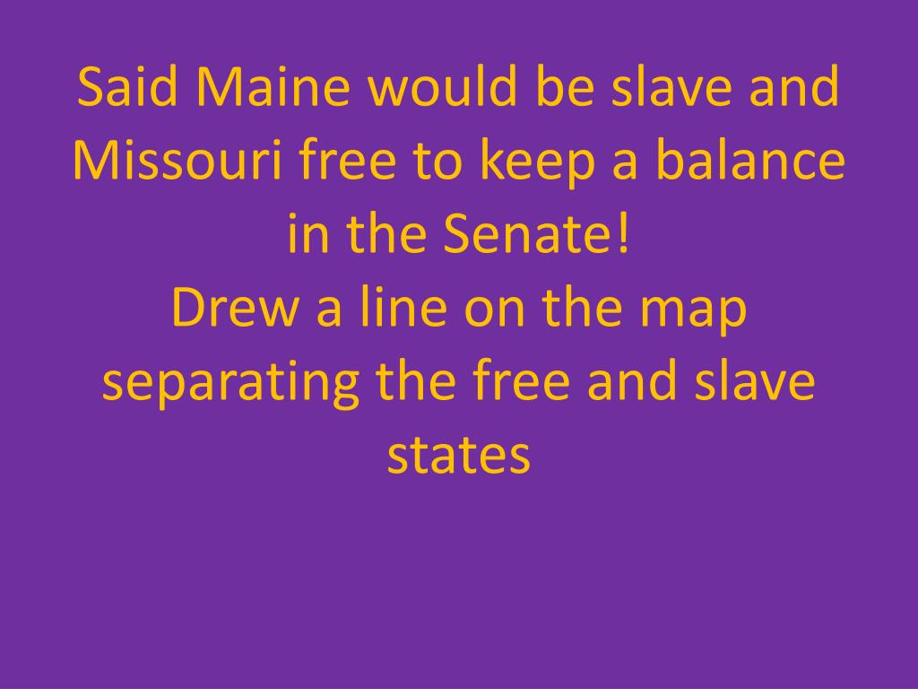 Said Maine would be slave and Missouri free to keep a balance in the Senate!Drew a line on the map separating the free and slave states