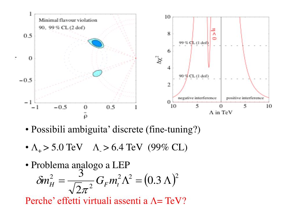 Possibili ambiguita’ discrete (fine-tuning?) • L+ > 5.0 TeV L- > 6.4 TeV (99% CL) • Problema analogo a LEP • Perche’ effetti virtuali assenti a L= TeV?