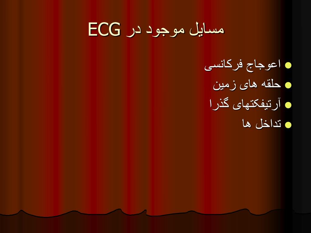 مسایل موجود در ECG • اعوجاج فرکانسی • حلقه های زمین • آرتیفکتهای گذرا • تداخل ها