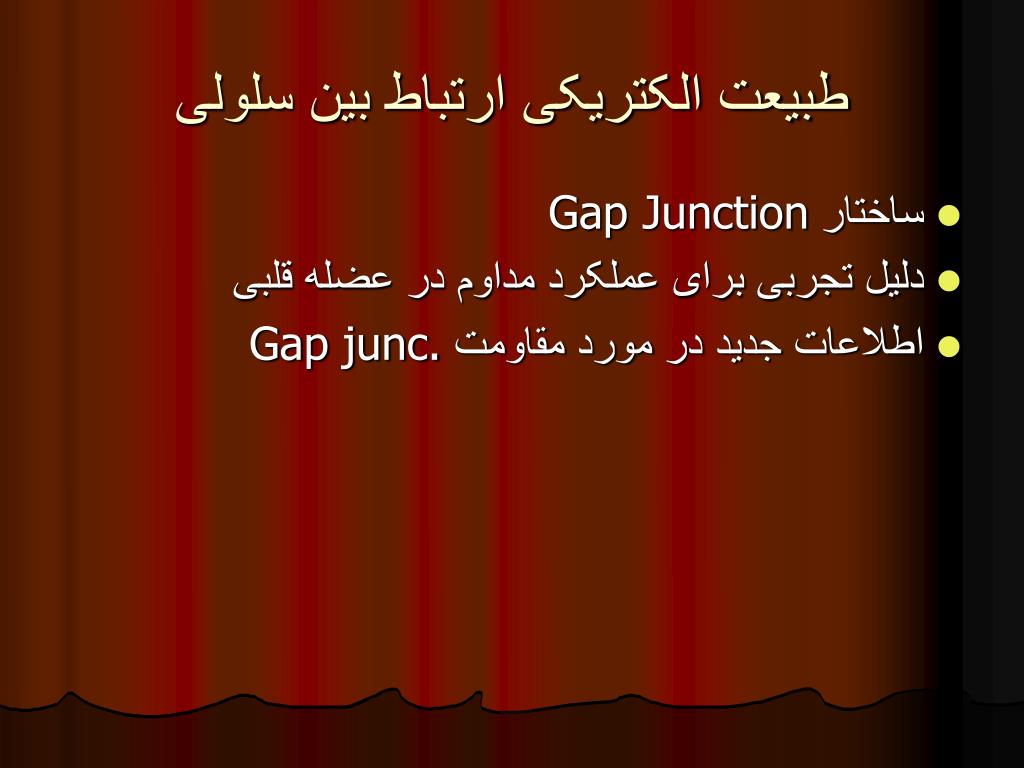 طبیعت الکتریکی ارتباط بین سلولی • ساختار Gap Junction • دلیل تجربی برای عملکرد مداوم در عضله قلبی • اطلاعات جدید در مورد مقاومت Gap junc.