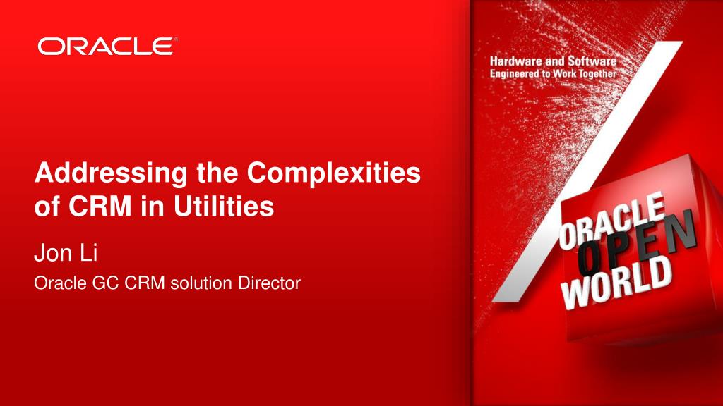 Addressing the Complexities of CRM in Utilities. Jon Li Oracle GC CRM solution Director. Session Topics. Oracle CRM Solutions for the various Utilities Market Needs Announcement : Siebel Utilities – Utilities CC&B Integration for Customer and Product Data Synchronization
