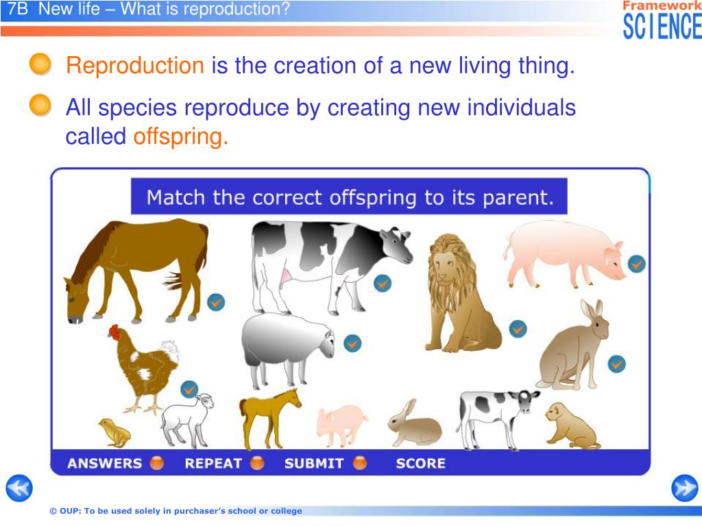 7B New life – What is reproduction? Reproduction is the creation of a new living thing. All species reproduce by creating new individuals called offspring.
