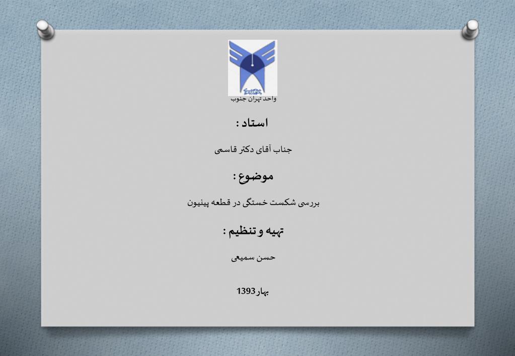 واحد تهران جنوب استاد : جناب آقای دکتر قاسمی موضوع : بررسی شکست خستگی در قطعه پینیون تهيه و تنظيم : حسن سمیعی بهار 1393