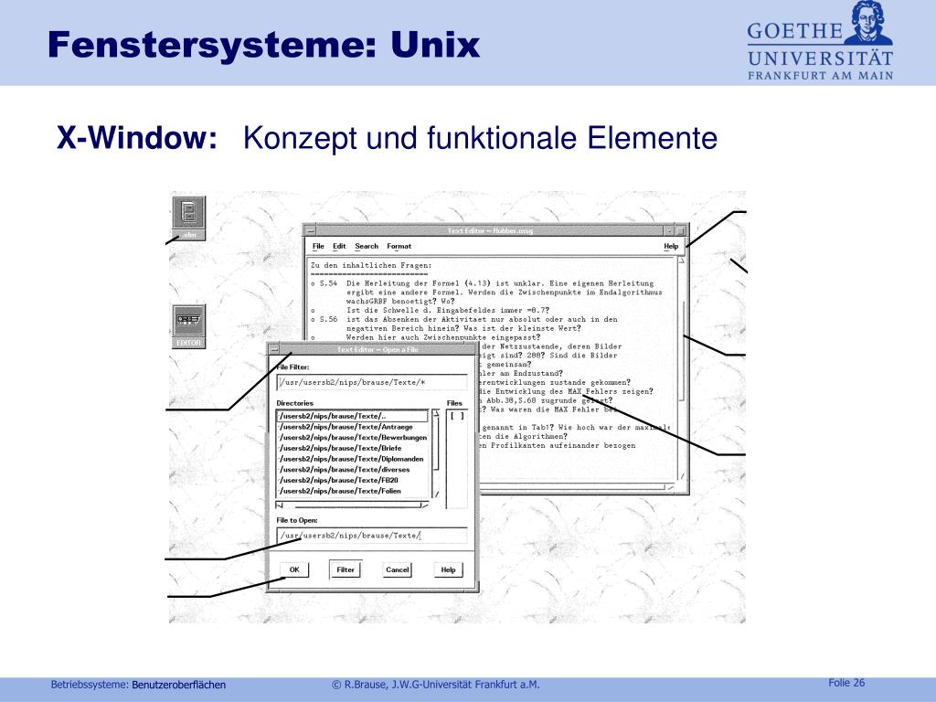 Fenstersysteme: Unix X-Window: Konzept undfunktionale Elemente Benutzeroberflächen