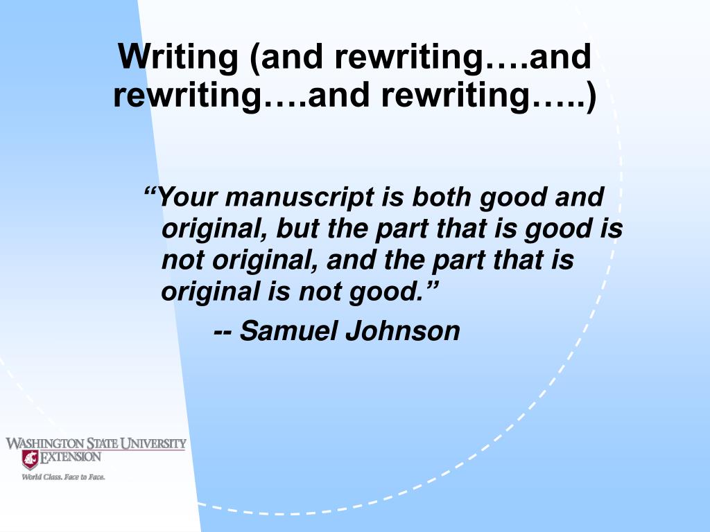 Writing (and rewriting….and rewriting….and rewriting…..) “Your manuscript is both good and original, but the part that is good is not original, and the part that is original is not good.” -- Samuel Johnson