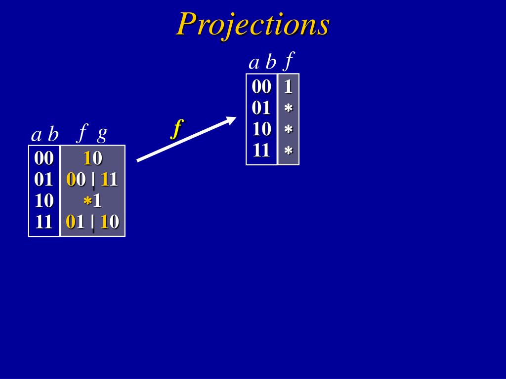 f a b 1 00 01 10 11 f g a b f 10 00 | 11 1 01 |10 00 01 10 11 Projections
