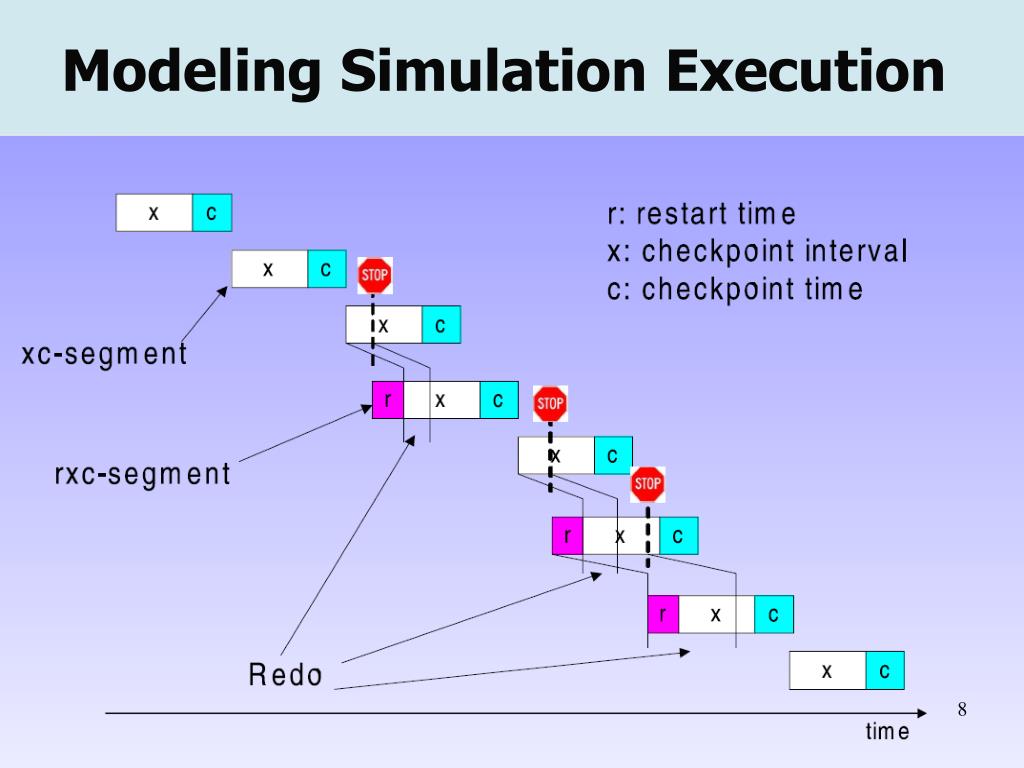 Proactive Failure Detection • Major cause of simulation crashes is low memory • API’s in J2SE 5.0 can be used for: • External monitoring using external monitoring software • Internal monitoring by adding logic inside the simulation • E.g. MXBeans Low Mem Notification => checkpoint and terminate gracefully R Q 2