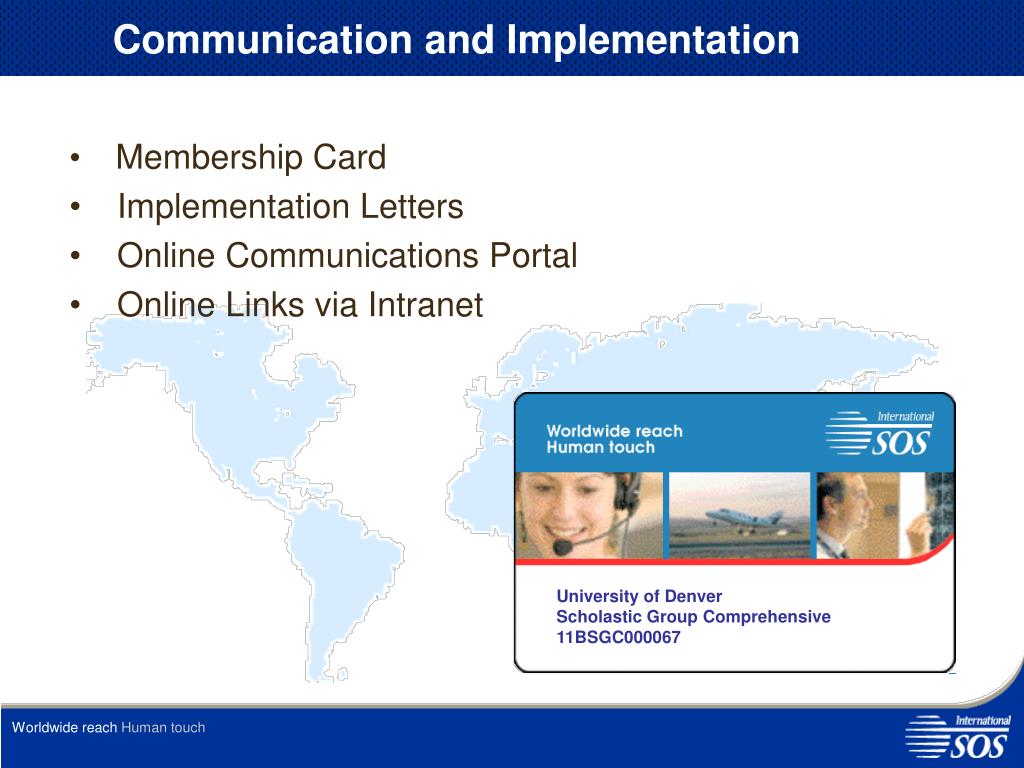 Communication and Implementation • Membership Card • Implementation Letters • Online Communications Portal • Online Links via Intranet University of Denver Scholastic Group Comprehensive 11BSGC000067