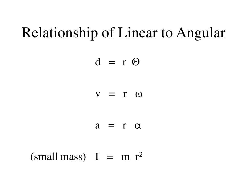 Relationship of Linear to Angular d = r v = r a = r (small mass) I = m r2