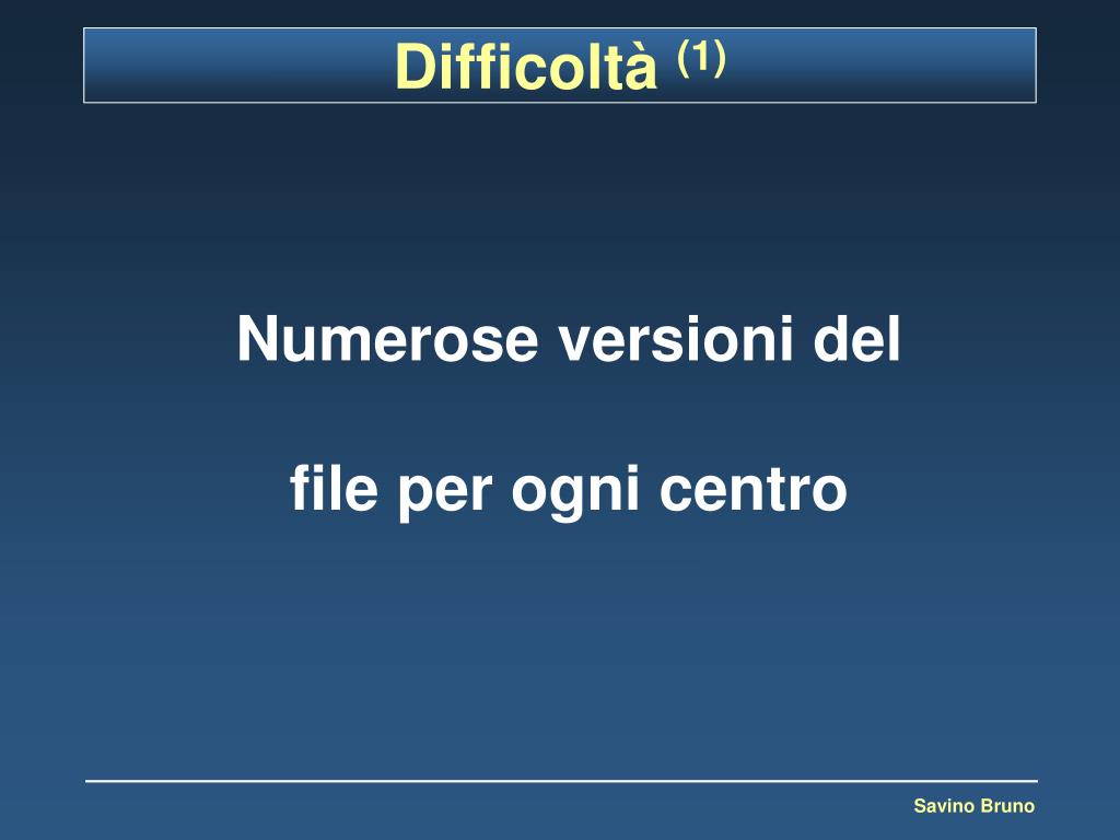 Difficoltà (1) Numerose versioni del file per ogni centro Savino Bruno