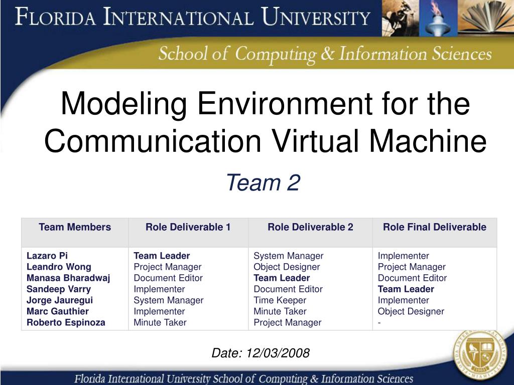 Modeling Environment for the Communication Virtual Machine Team 2 Date: 12/03/2008