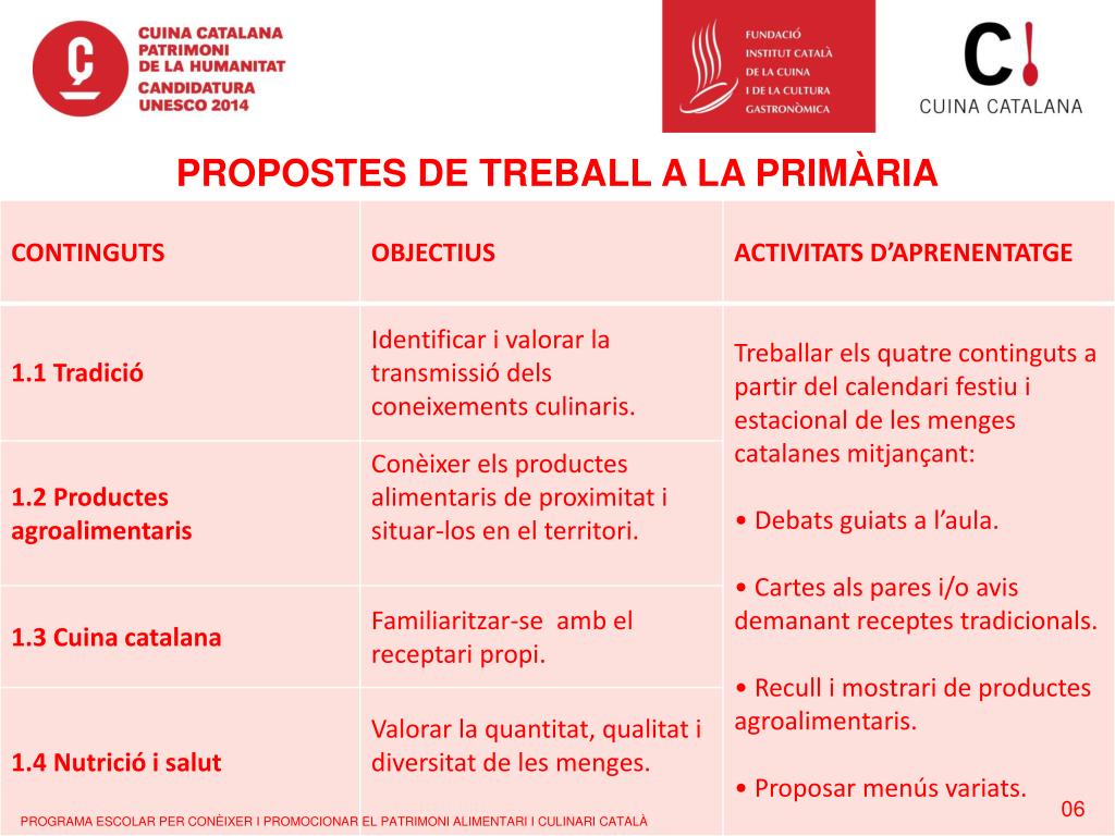 PROPOSTES DE TREBALL A LA PRIMÀRIA 06 PROGRAMA ESCOLAR PER CONÈIXER I PROMOCIONAR EL PATRIMONI ALIMENTARI I CULINARI CATALÀ