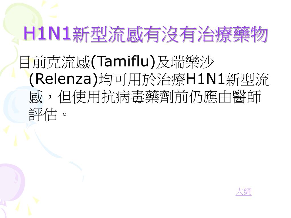 H1N1新型流感有沒有治療藥物 目前克流感(Tamiflu)及瑞樂沙(Relenza)均可用於治療H1N1新型流感,但使用抗病毒藥劑前仍應由醫師評估。 大綱