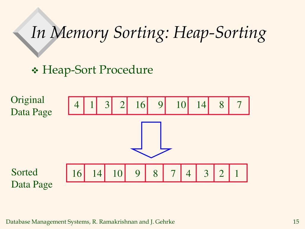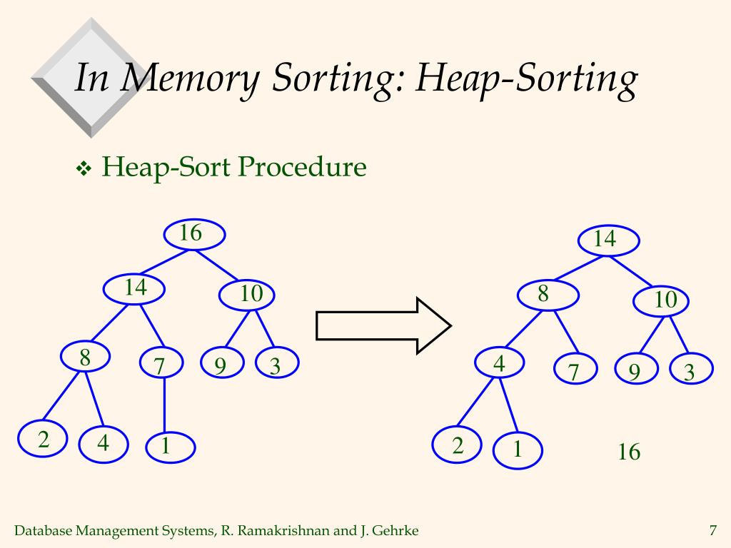 In Memory Sorting: Heap-Sorting • Heap-Sort Procedure 14 10 8 10 8 9 4 7 9 3 4 1 7 3 2 1 16 2 14 16