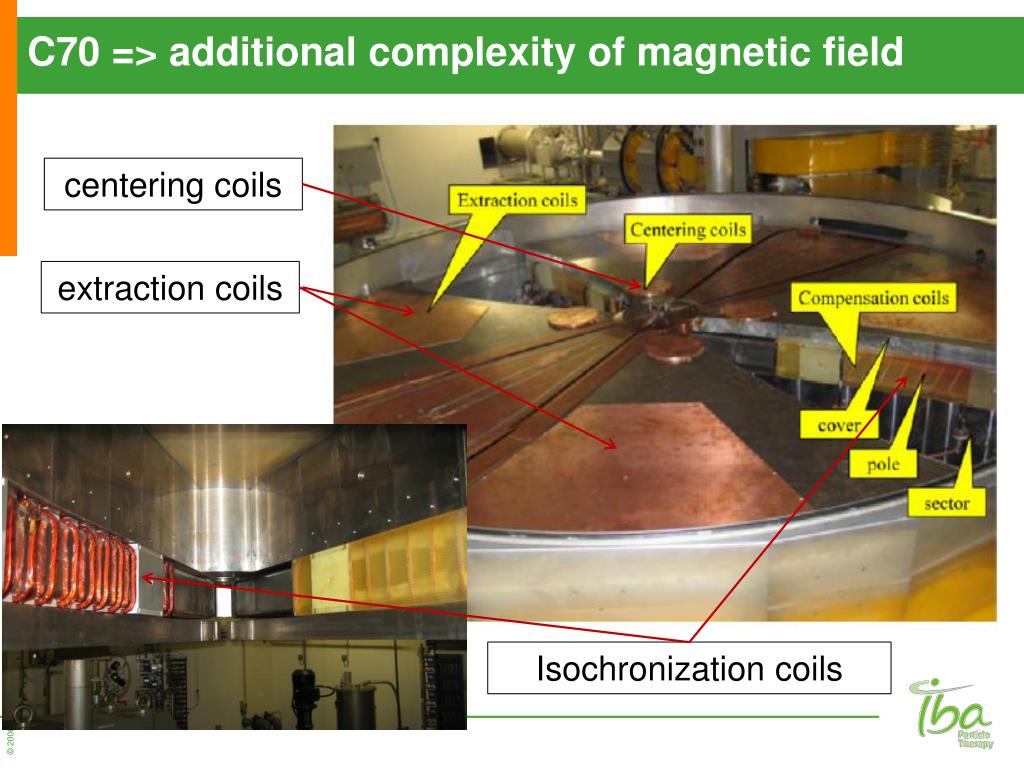 C70 => additionalcomplexity of magneticfield centeringcoils extraction coils Isochronization coils