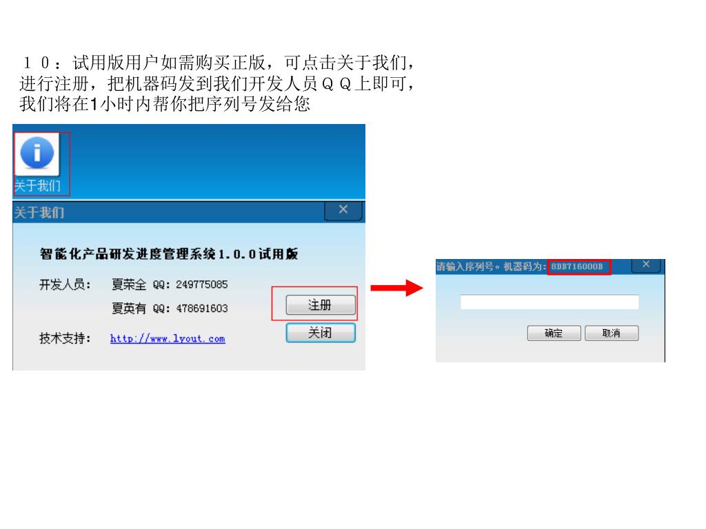 10:试用版用户如需购买正版,可点击关于我们,进行注册,把机器码发到我们开发人员QQ上即可,我们将在1小时内帮你把序列号发给您10:试用版用户如需购买正版,可点击关于我们,进行注册,把机器码发到我们开发人员QQ上即可,我们将在1小时内帮你把序列号发给您