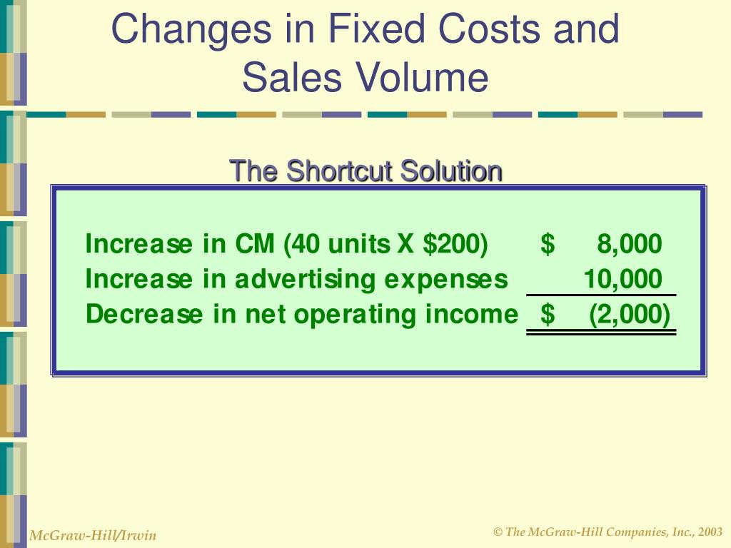Changes in Fixed Costs and Sales Volume The Shortcut Solution