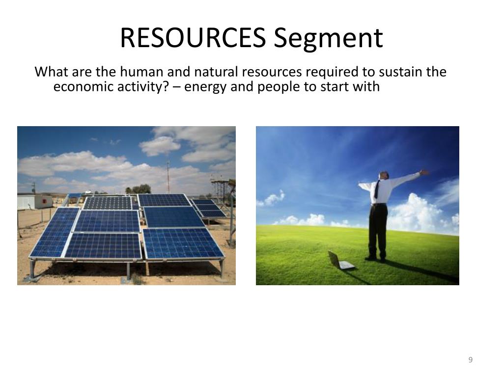 RESOURCES Segment What are the human and natural resources required to sustain the economic activity? – energy and people to start with