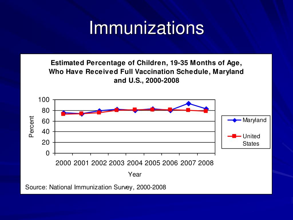 Mortality • In 2007, there were 366 deaths to children ages 1-17 in Maryland and the child death rate was 28.6 deaths per 100,000 population. • Highest child death rates (2005-2007): • Black, non-Hispanic youth: 33.4 per 100,000 • Older youth (15-17 years): 51.1 per 100.000 Source: MD DHMH, Vital Statistics Administration