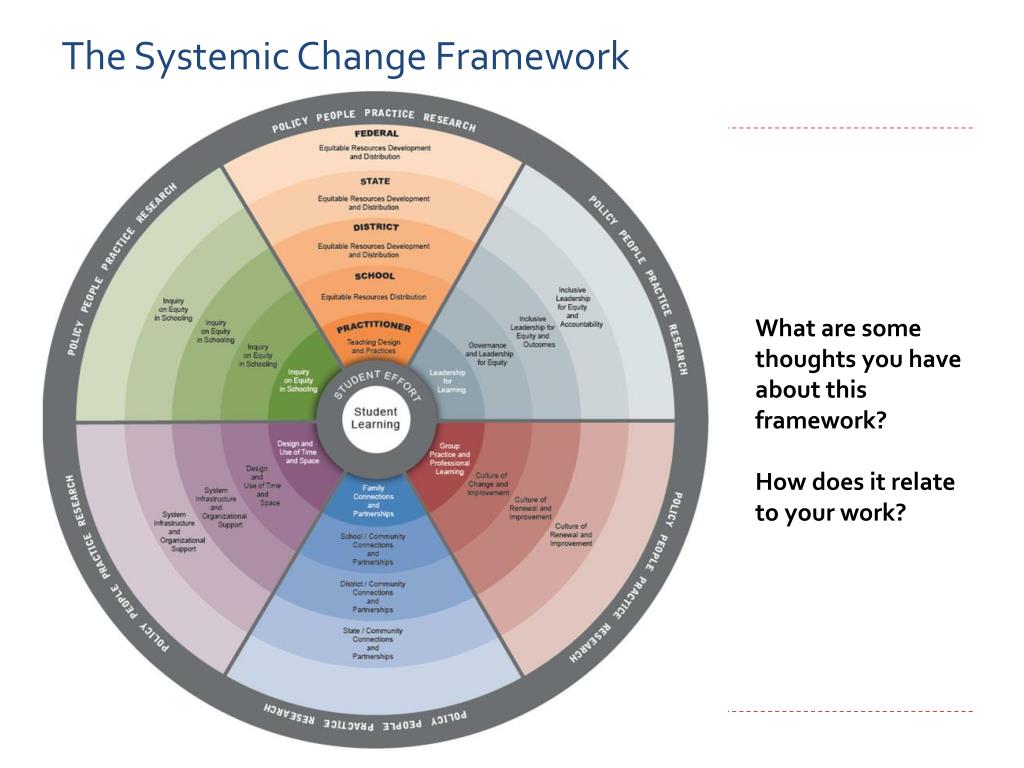 The Systemic Change Framework What are some thoughts you have about this framework? How does it relate to your work?