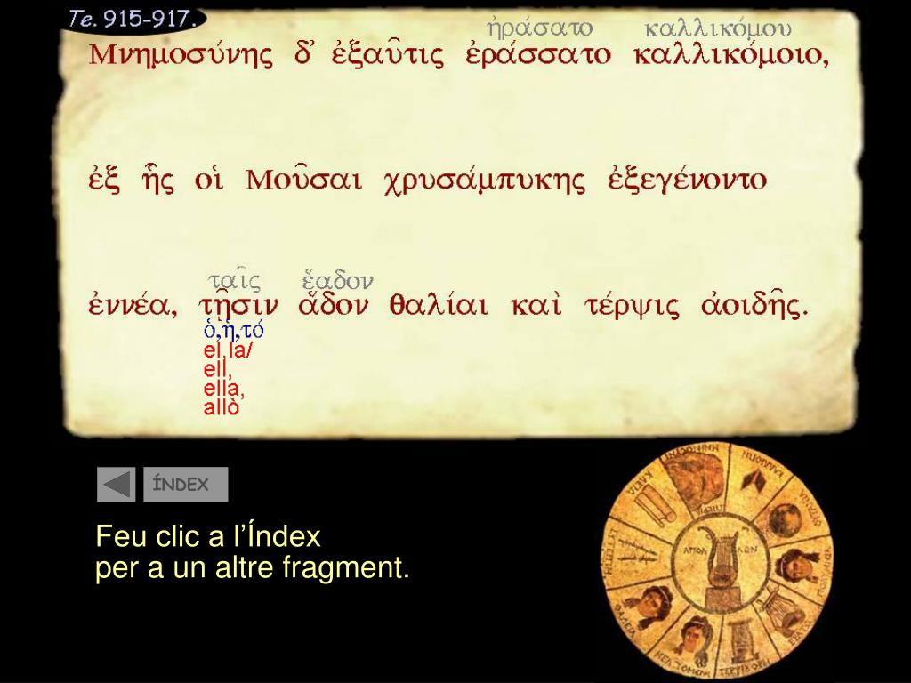 ÍNDEX. Feu clic al primer Verb personal. ÍNDEX. 3a persona, Subjecte ell. Feu clic al Règim del Verb. ÍNDEX. Feu clic al C.C. de temps. ÍNDEX. Feu clic al següent Verb personal. ÍNDEX. Feu clic al Subjecte. ÍNDEX. Feu clic al C.C. de lloc UNDE (relatiu i adjectiu). ÍNDEX.