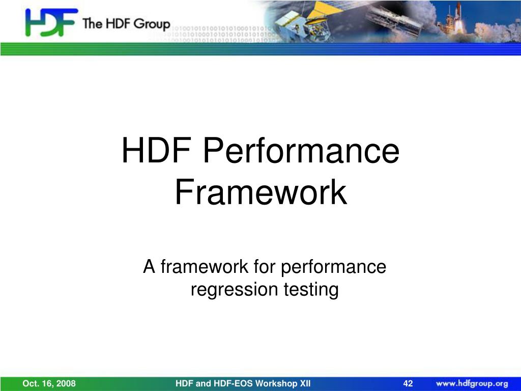 HDF Performance Framework A framework for performance regression testing HDF and HDF-EOS Workshop XII