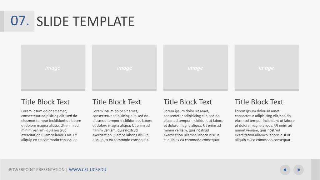 07. SLIDE TEMPLATE Title Block Text Title Block Text Title Block Text Title Block Text Lorem ipsum dolor sit amet, consectetur adipisicing elit, sed do eiusmod tempor incididunt ut labore et dolore magna aliqua. Ut enim ad minim veniam, quis nostrud exercitation ullamco laboris nisi ut aliquip ex ea commodo consequat. Lorem ipsum dolor sit amet, consectetur adipisicing elit, sed do eiusmod tempor incididunt ut labore et dolore magna aliqua. Ut enim ad minim veniam, quis nostrud exercitation ullamco laboris nisi ut aliquip ex ea commodo consequat. Lorem ipsum dolor sit amet, consectetur adipisicing elit, sed do eiusmod tempor incididunt ut labore et dolore magna aliqua. Ut enim ad minim veniam, quis nostrud exercitation ullamco laboris nisi ut aliquip ex ea commodo consequat. Lorem ipsum dolor sit amet, consectetur adipisicing elit, sed do eiusmod tempor incididunt ut labore et dolore magna aliqua. Ut enim ad minim veniam, quis nostrud exercitation ullamco laboris nisi ut aliquip ex ea commodo consequat. image image image image