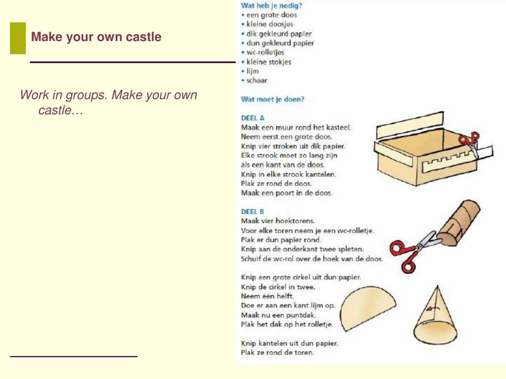 Work in groups. Make your own castle… Make your own castle