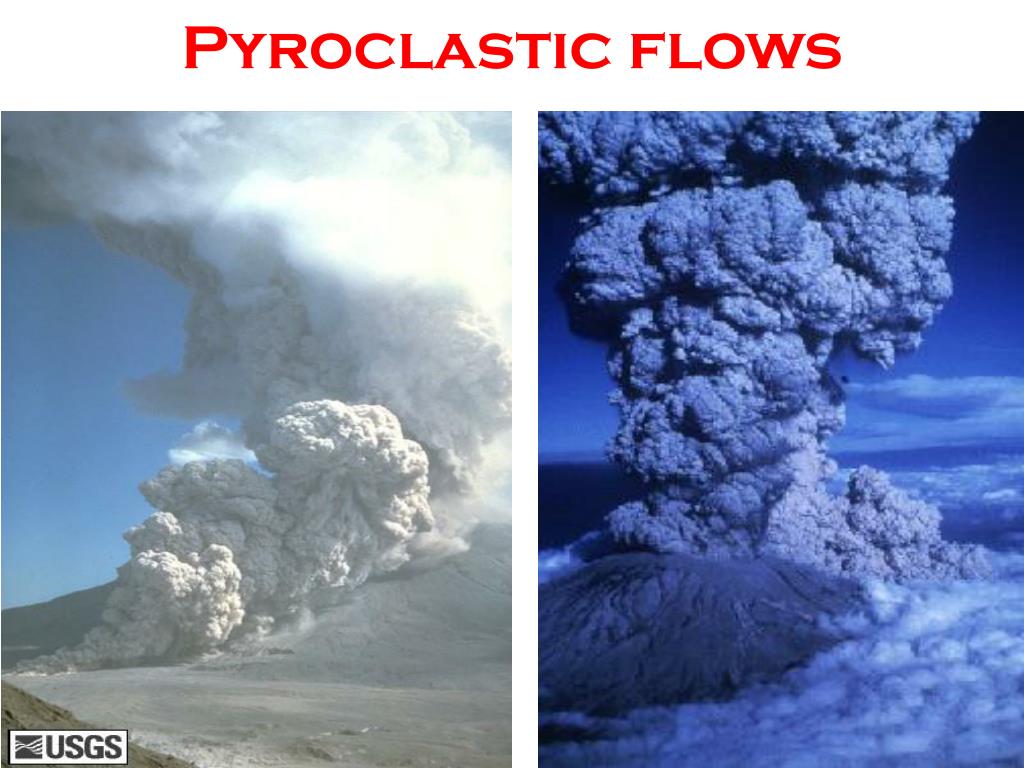 Pyroclastic flows • move at speeds of over 60 miles per hour • reach temperatures of over 800 Degrees Fahrenheit (400 degrees Celsius).