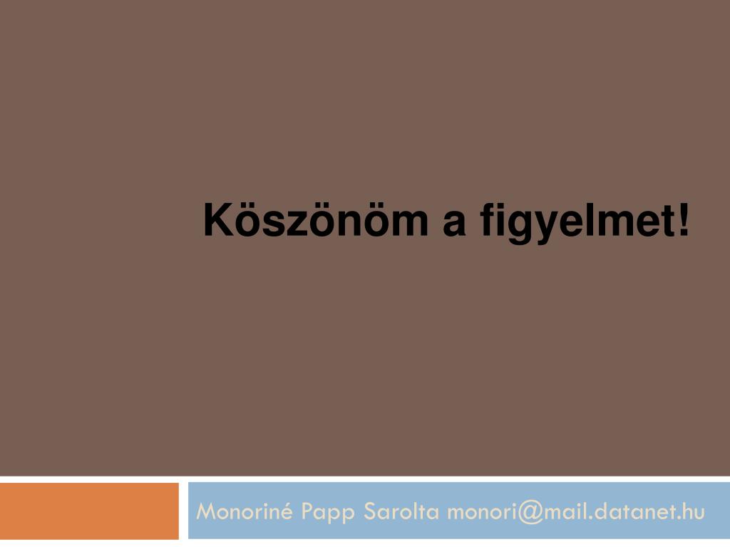 Köszönöm a figyelmet! Monoriné Papp Sarolta monori@mail.datanet.hu