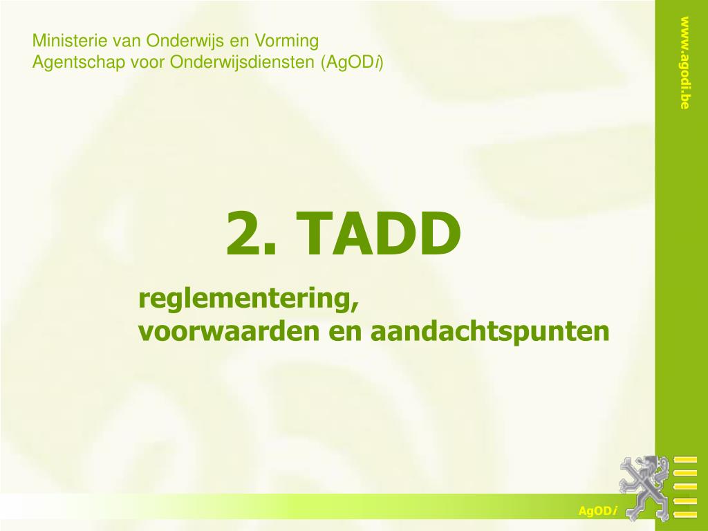 reglementering, voorwaarden en aandachtspunten 2. TADD