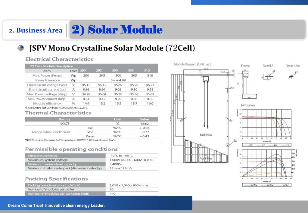 2) Solar Module Business Area JSPV Mono Crystalline Solar Module (72Cell)