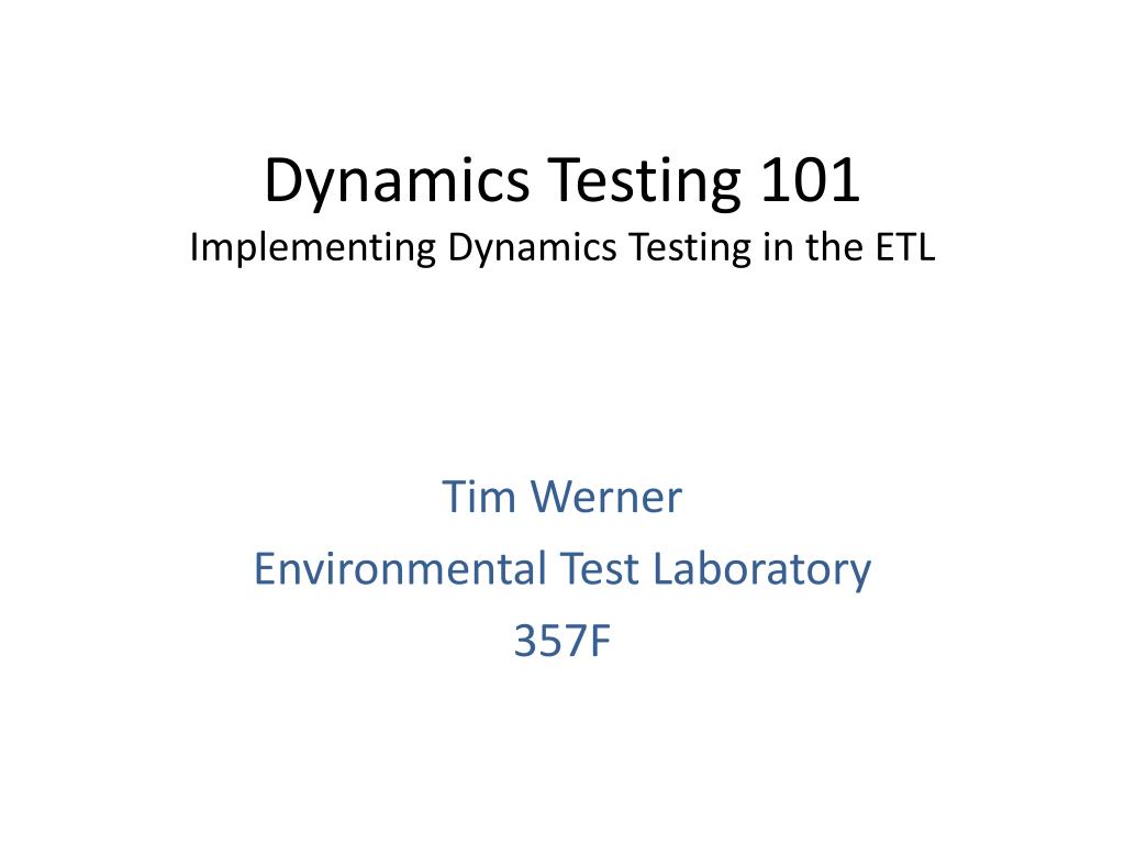 Dynamics Testing 101Implementing Dynamics Testing in the ETL Tim Werner Environmental Test Laboratory 357F