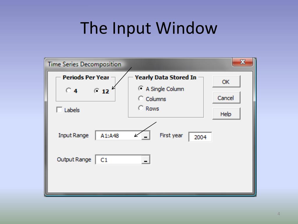 A Look at the U.S. Total Retail Sales • The data on the next slide consist of the total U.S. retail sales (excluding motor vehicle and parts dealers) in billions of dollars for four years • We’ll use the time series decomposition macro on these data and discuss the results
