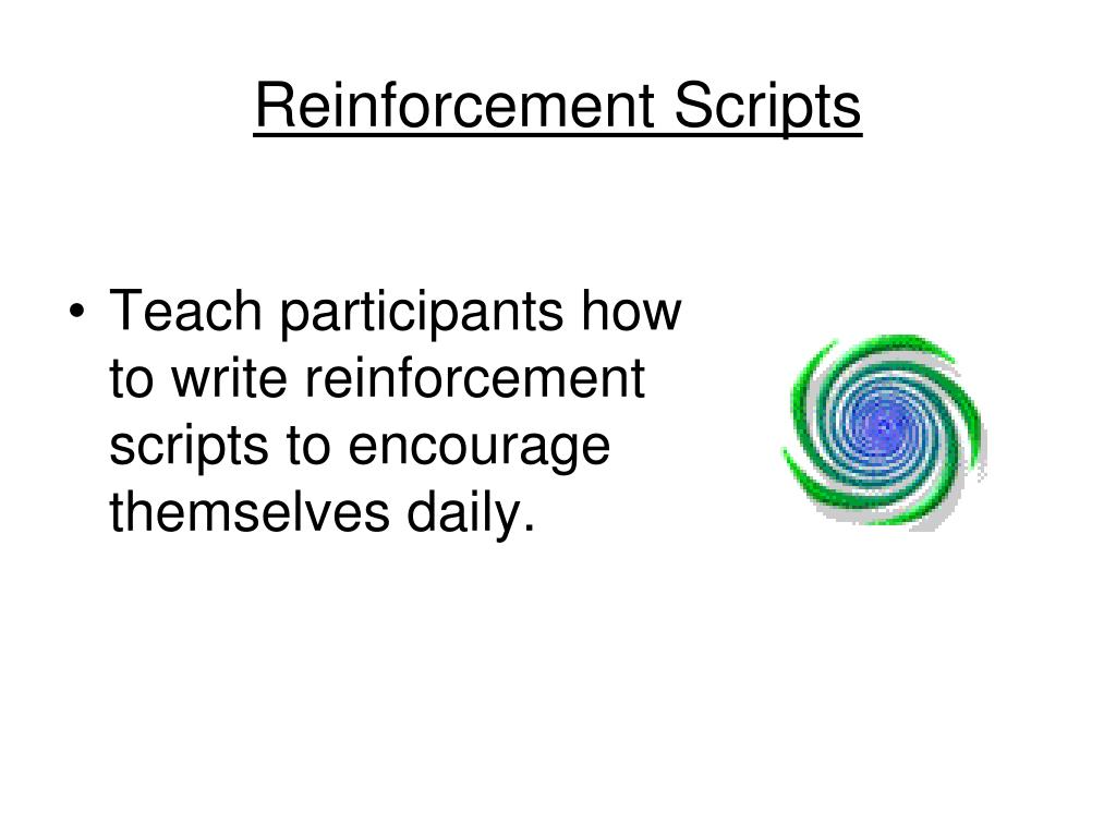 Reinforcement Scripts • Teach participants how to write reinforcement scripts to encourage themselves daily.