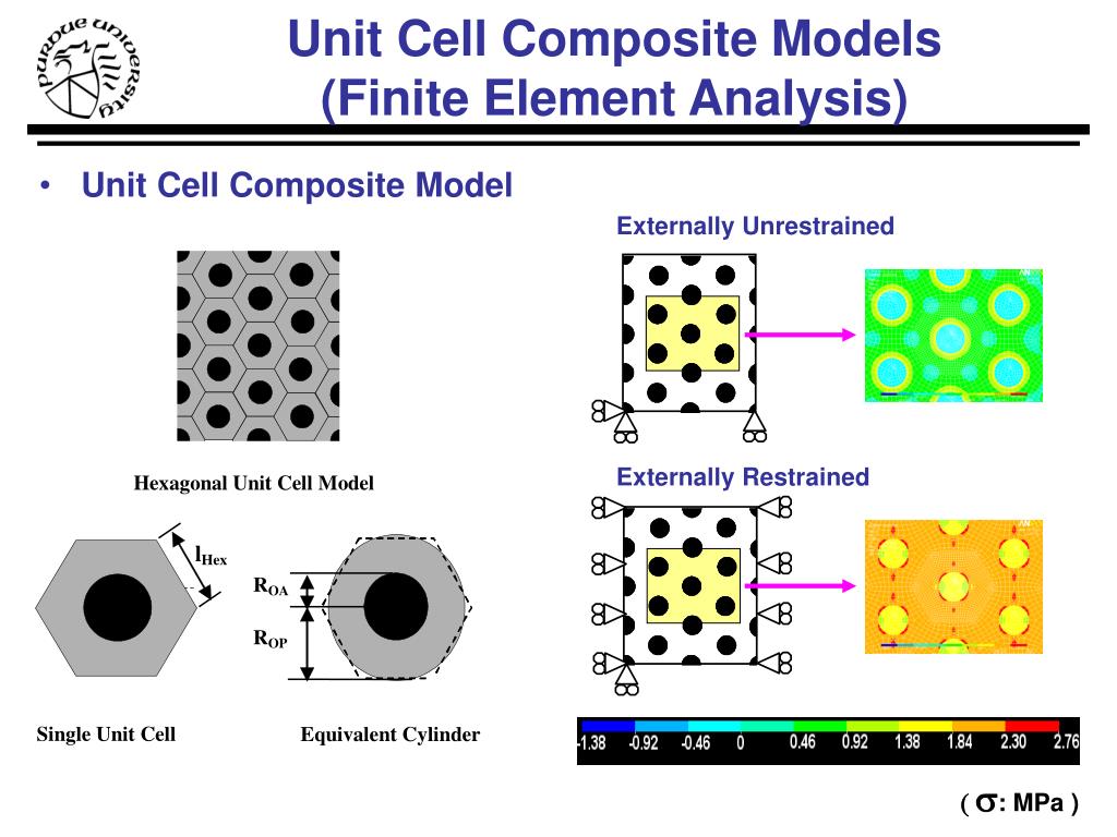 Unit Cell Composite Models(Finite Element Analysis) • Unit Cell Composite Model Externally Unrestrained Externally Restrained ( s: MPa )