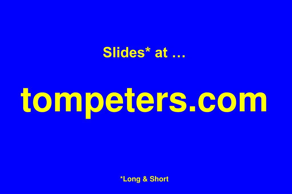 The Incredible, Wild, Whacky, Scary, SuperCool Future … and Why We’re Not Even Remotely Prepared, and What We Can Do About It, for the Sake of of Our Careers, Work and Organizations: A Musing on Strategies, Tactics, Attitudes, Tips, and General Observations, Such as Why a CFO Should Never Be Promoted to CEO, Why All MBA Programs Should Be Closed and Shuttered (except Kellogg), How the “2Bs” (Bentonville and Beijing) Became the Co-capitols of the Universe, Why Only Freaks Get Things Done (in Freaky Times), Why Outrageously Audacious Devotion to Game-changing Innovation Is the PSR/Primary Survival Requisite (Duh), Why Women Are So Much Better Leaders Than Men (Duh II) (and They Also Buy Everything, Though Just Try Telling That to Chicago’s Advertising “Geniuses”), Why I Call Hospitals “The Killing Fields,” and How UPS & GE & IBM Are Actually All About Love! (We Will Totally Cover All This and More in 3F, or 90 Minutes in “Old Language.”)