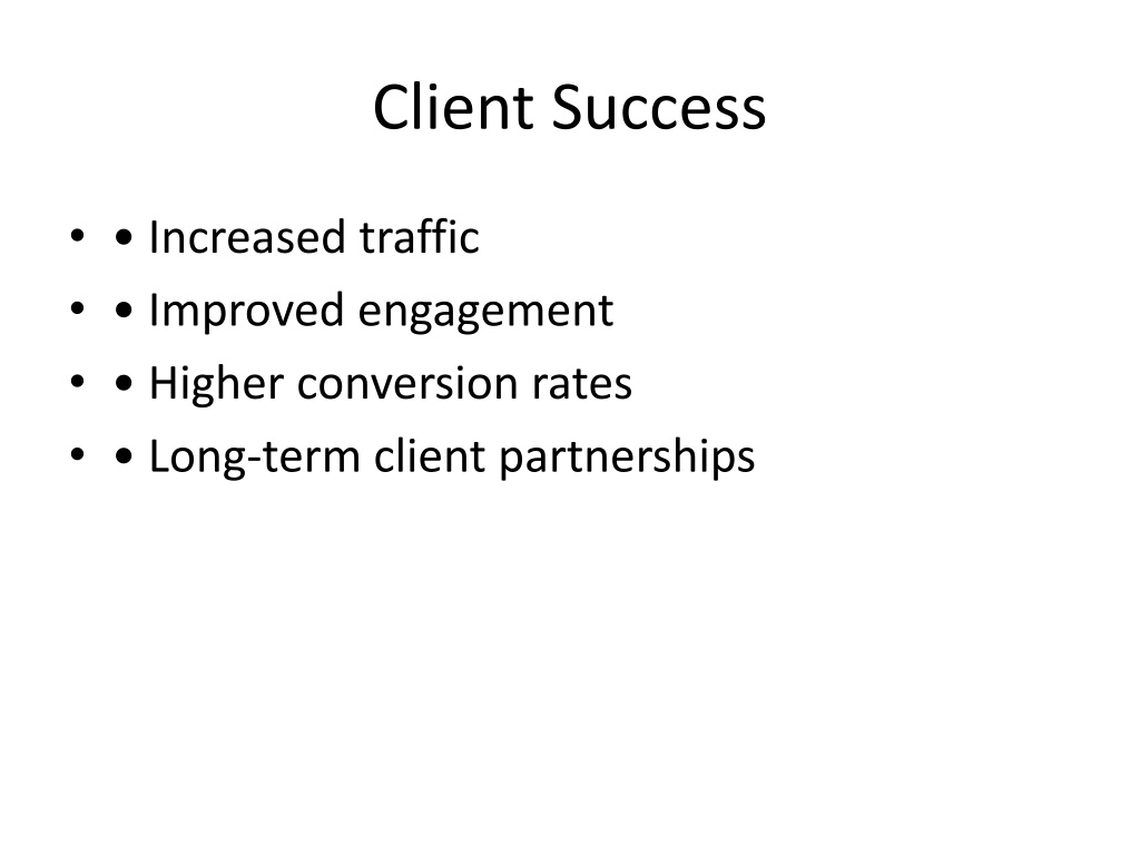 12. Client Success • • Increased traffic • • Improved engagement • • Higher conversion rates • • Long-term client partnerships