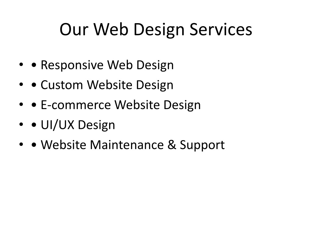 5. Our Web Design Services • • Responsive Web Design • • Custom Website Design • • E-commerce Website Design • • UI/UX Design • • Website Maintenance & Support