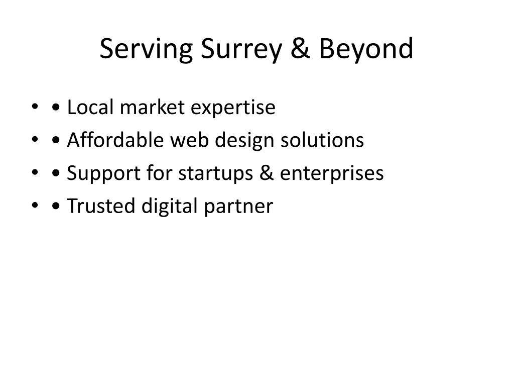 13. Serving Surrey & Beyond • • Local market expertise • • Affordable web design solutions • • Support for startups & enterprises • • Trusted digital partner