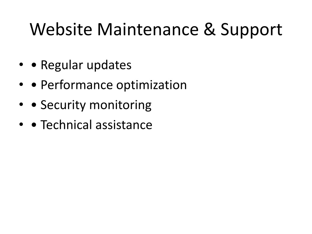 10. Website Maintenance & Support • • Regular updates • • Performance optimization • • Security monitoring • • Technical assistance