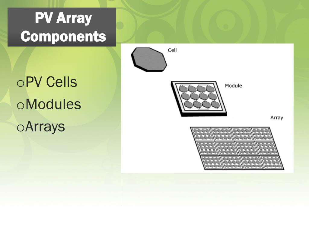 Energy from the Sun Workshop Introduction to Photovoltaics. Electricity Basics. Electrical Current – how many electrons Voltage – how hard they’re pushed Power – what they can accomplish Circuit – where they can go Series Circuit – one pathway only Parallel Circuit – so many choices!.