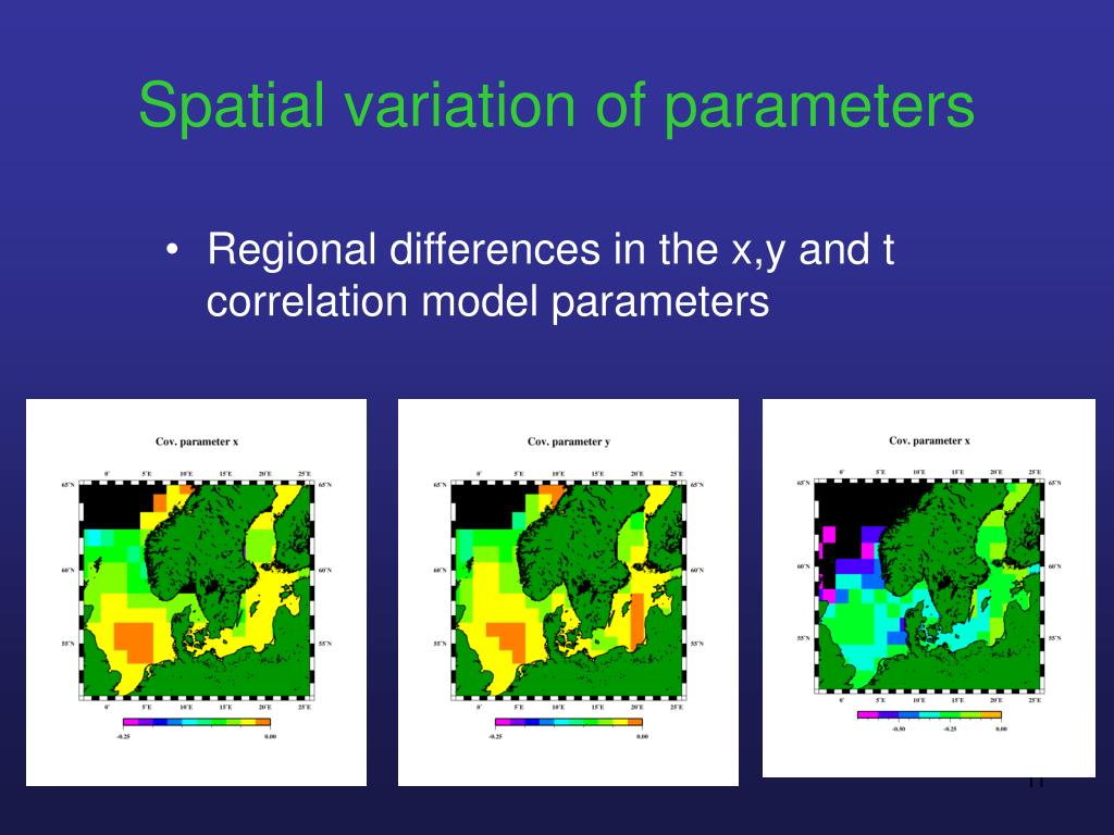 Spatial variation of parameters • Regional differences in the x,y and t correlation model parameters