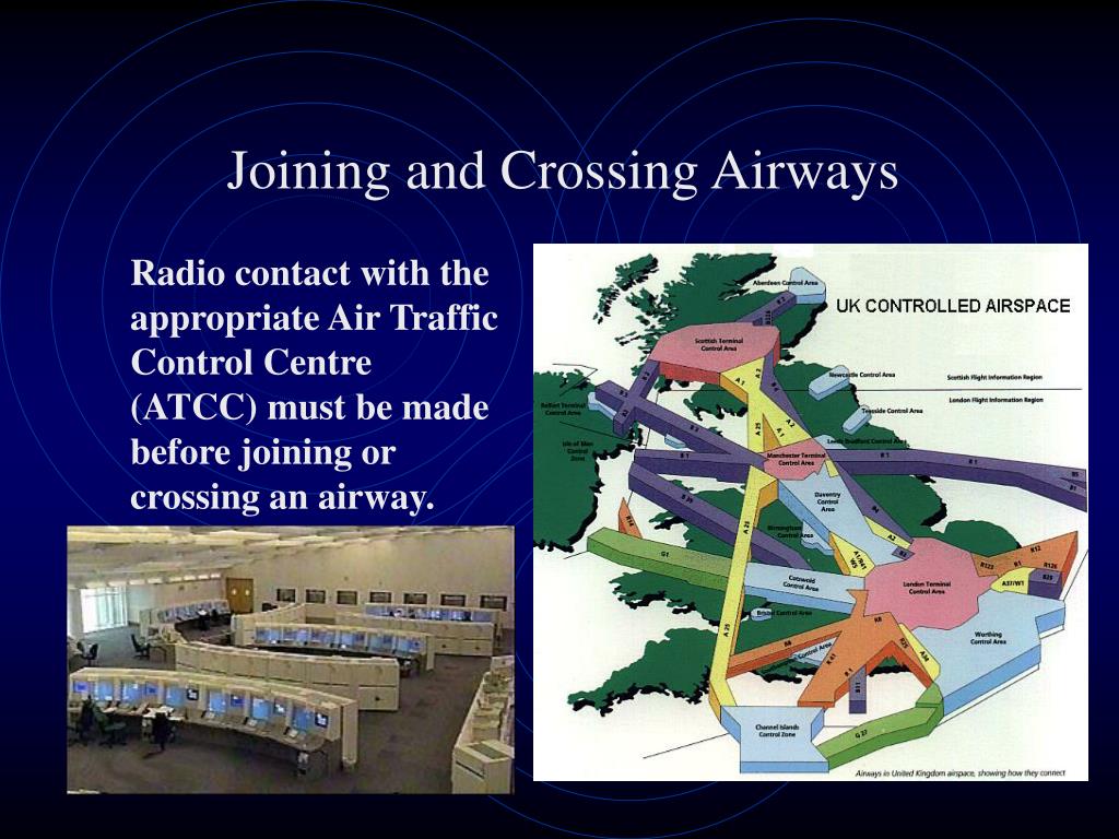Joining and Crossing Airways Radio contact with the appropriate Air Traffic Control Centre (ATCC) must be made before joining or crossing an airway.